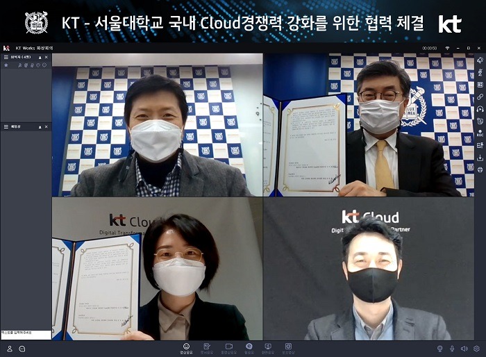 프로그램 추진을 위해 KT Cloud/DX사업본부장 이미희 상무, Cloud사업담당 김주성 상무, 서울대 공과대학장 차국헌 교수, 공과대학 정보화본부장 이재욱 교수가 비대면 방식으로 서면 협약을 맺었다.